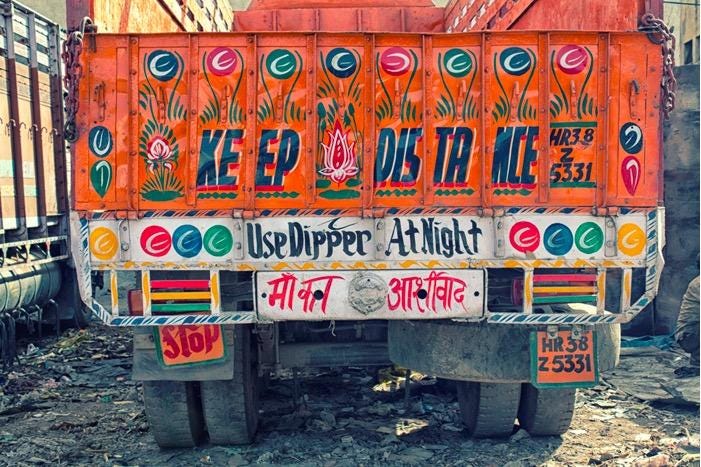 You will also notice that Indians are ambidextrous on the highways . They can drive on both side of the median with equal ease . A vehicle which has the sticker with lettering of “Government of .. “ written in green is heading from the wrong side. One wonders if this is symbolic of the direction some states and countries are headed in.